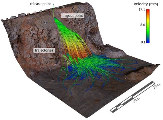 - Sala, Z.; Jean Hutchinson, D.; Harrap, R. Simulation of fragmental rockfalls detected using terrestrial laser scans from rock slopes in south-central British Columbia, Canada. Nat. Hazards Earth Syst. Sci. 2019, 19, 2385–2404. [Google Scholar] [CrossRef]