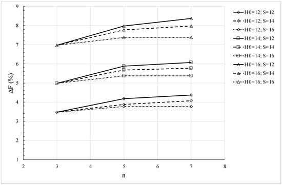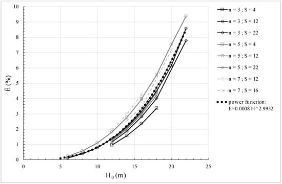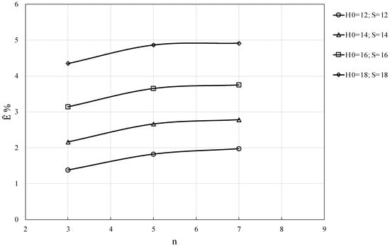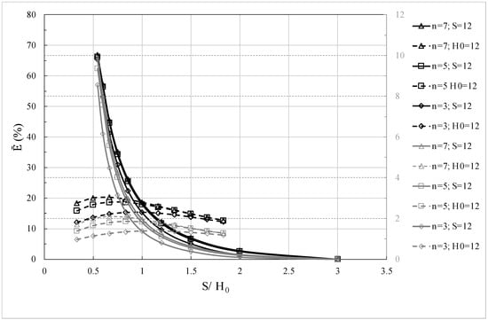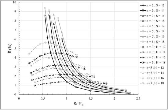 However, Ē does not always increase as n increases, as Ē decreases for n increasing beyond a threshold n value. Figure 16 reports the change of Ē as a function of n, for a value of S/H0 equal to 1. An increment about 0.5% is observed when n increases from n = 3 to n = 5, whereas no significant Ē variation is observed from n = 5 to n = 7.