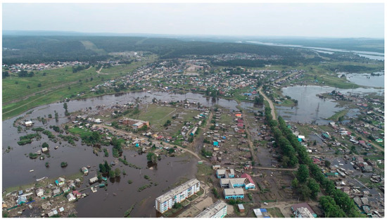 - Shalikovskii, A.V.; Lepikhin, A.P.; Tiunov, A.A.; Kurganovich, K.A.; Morozov, M.G. The 2019 Floods in Irkutsk Region. Water Sect. Russ. 2019, 6, 48–65. [Google Scholar]