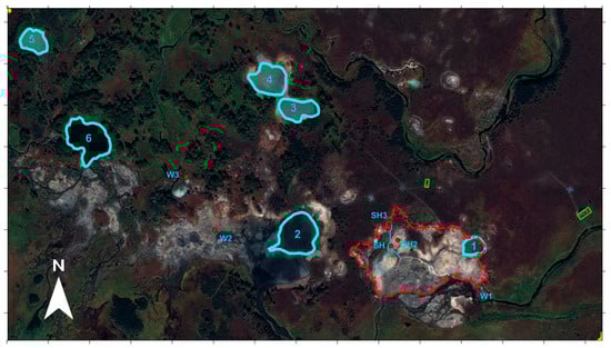 - Walter, T.R.; Jousset, P.; Allahbakhshi, M.; Witt, T.; Gudmundsson, M.T.; PállHersir, G. Underwater and drone based photogrammetry reveals structural control at Geysir geothermal field in Iceland. J. Volcanol. Geotherm. Res. 2018, 391. [Google Scholar] [CrossRef]