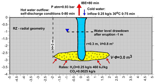 - Kiryukhin, A.V.; Rychkova, T.V.; Sergeeva, A.V. Modeling conditions of permeable geyser conduit formations in silicic volcanism areas. J. Volcanol. Seismol. 2020, 2, 3–16. [Google Scholar]
