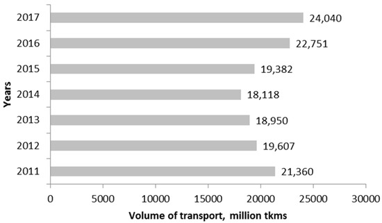 Volume of soil transport in Finland—source: Statistics Finland: https://www.stat.fi (Ton-kilometer describes the volume of transport and is obtained as a product of transported volume of goods in tons and length of transport journey in kilometers).