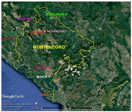 - Radovic, D. Nova Anticka Duklja/New Antique Doclea 1–7; Ju Muzeji I Galerije Podgorice: Podgorica, Montenegro, 2010–2017. [Google Scholar]