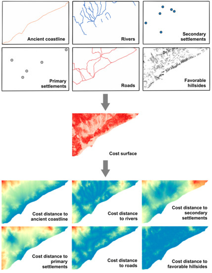 - Herzog, I. Theory and practice of cost functions. In CAA2010: Fusion of cultures. Proceedings of the 38th Annual Conference on Computer Applications and Quantitative Methods in Archaeology (CAA); Contreras, F., Farjas, M., Melero, F.J., Eds.; Archaeopress: Oxford, UK, 2010; pp. 375–382. [Google Scholar]