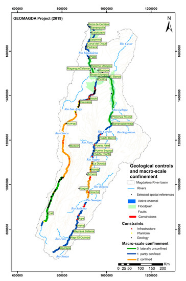 - Nardini, A.; Yépez, S.; Rogeliz, C. Caracterización geomorfológica river styles en la Cuenca del rio Magdalena: Caso estudio Magdalena y caja de herramientas para la aplicación automatizada a la cuenca. GeoMagda ToolBox; The Nature Conservancy: Bogotá, Colombia, 2019; Available online: https://www.researchgate.net/publication/338585128_Manual_GeoMAGDA (accessed on 3 March 2020).