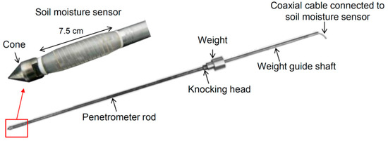 - Vaz, C.M.P.; Hopmans, J.W. Simultaneous measurement of soil penetration resistance and water content with a combined penetrometer–TDR moisture probe. Soil Sci. Soc. Am. J. 2001, 65, 4–12. [Google Scholar] [CrossRef]