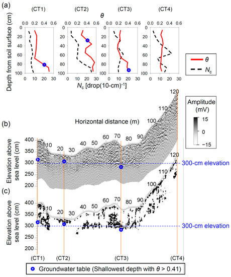 - Yamakawa, Y.; Kosugi, K.; Masaoka, N.; Tada, Y.; Mizuyama, T. Use of a combined penetrometer-moisture probe together with geophysical methods to survey hydrological properties of a natural slope. Vadose Zone J. 2010, 9, 768–779. [Google Scholar] [CrossRef]