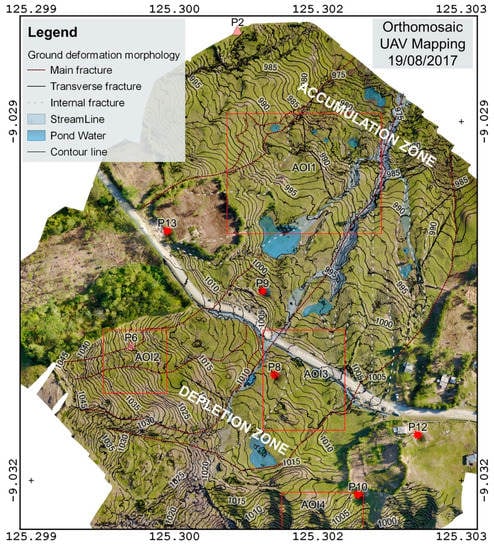 Ground surface deformation morphology interpretation based on the UAV orthomosaic images acquired on 19 August 2017.