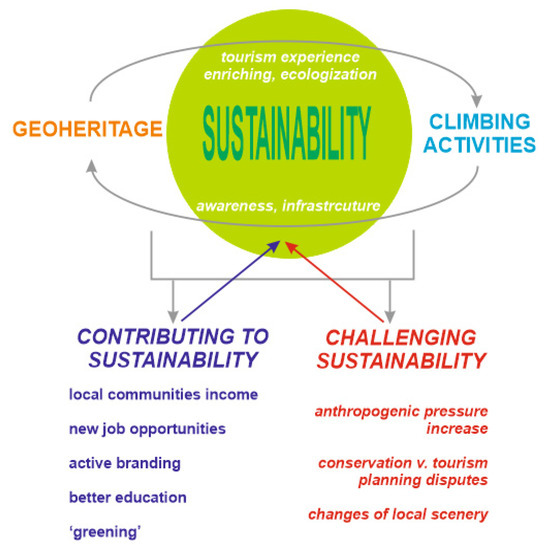 Relationship of geoheritage management (including geotourism) and climbing activities to sustainability.