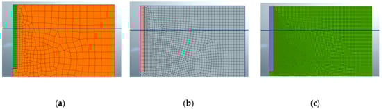 Finite element meshes with different sizes. (a) Coarse mesh, (b) medium mesh, (c) fine mesh.