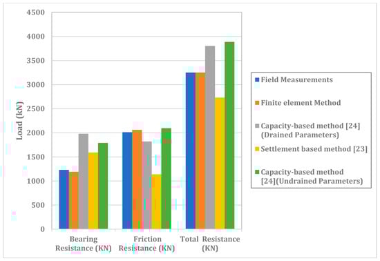 Figure 16 compares between field measurements, numerical results, and the calculated ultimate resistances using both the settlement-based [23] and the capacity-based [24] methods.