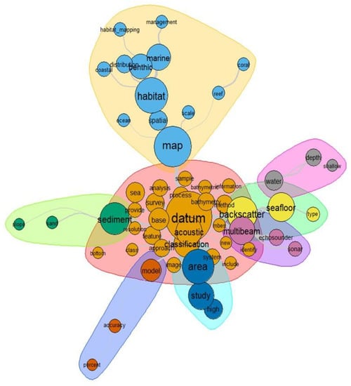 We believe that future directions for seabed mapping will probably engage increasingly integrated investigations, i.e., we expect further advances based on the great volume of data available and sophisticated classifications (unsupervised approaches, random forest and machine learning) [68]. Moreover, the terms such as “multispectral” and “water column” will probably become more accessible and will contribute to enhance seabed classification. As seabed mapping progresses, terms such as “resolution” and “accuracy” will remain present, as well as the challenge to create a suitable spatial and multiple layers representation, perhaps using virtual reality. In parallel, the technological development of better batteries, as well as the progress on data transfer techniques have potential to contribute with improvements to autonomous data acquisition and data repositories. Also, the use of non-acoustic systems to map shallow waters, such as Lidar in drones, should be widespread in this new decade.