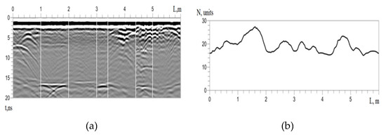 The result of calculating the “ripple” of the Fourier spectra of GPR traces of the radargram (Figure 7).