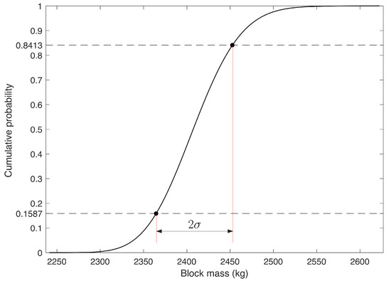 Figure 4. (ii) Two percentiles were identified, namely 15.87th and 84.13th, which represent the bounds of the mean ± one standard deviation of an equivalent normal distribution. (iii) The masses corresponding to those percentiles are identified, say