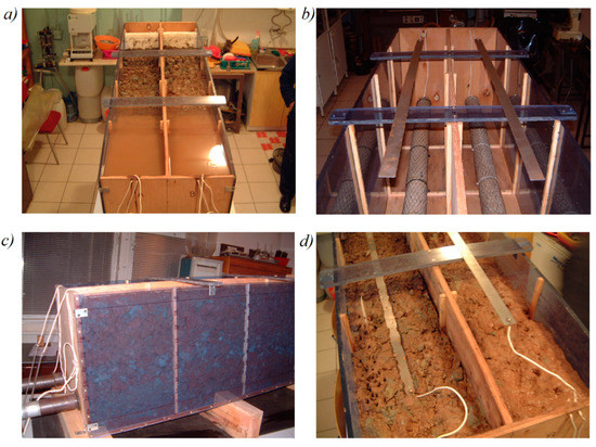 Lo et al. 1991 in [5,6] conducted complex experimental studies on osmotic strengthening of soft plastic clay. The efficiency of these treatments and the process mechanism were determined. The results of this study demonstrated that the distribution of induced voltage and vacuum of the pores along the sample are constant at continuous current flow in the whole sample. This demonstrates that the construction of an electrode in the tool applied during the study was efficient. The electroosmotic consolidation curve resembles the conventional consolidation curve, and the preconsolidation pressure was increased by 51–88%. The shear strength increased in the range of 50–172% and the water content diminished by 30%. Also, the technique of turning the electrodes was applied here, and a relatively uniform increase of the electroosmotic actions between the electrodes was observed. It was established that the studied process may have wider application, but requires technological improvements.