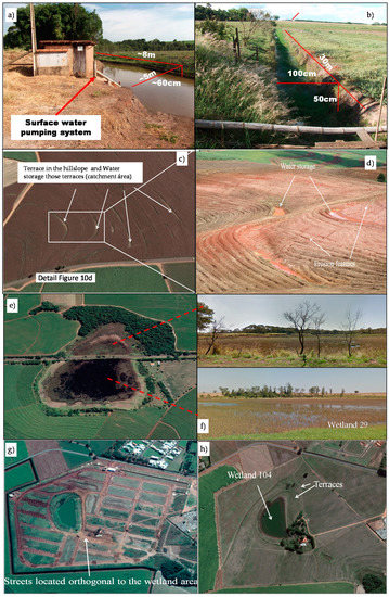 However, these areas are highly vulnerable to anthropogenic changes (e.g., extensive wetland drainage for agricultural and livestock, land use transitions to agriculture or grazed grassland, infrastructure developments, urban sprawl, extraction of water, and overexploitation of groundwater resources), and several wetland areas in the world are facing intense degradation processes at different levels [6,7,8,9,10,11]. Wetland hydrological, hydrogeological, biogeochemical, habitat, and ecological functions are impacted, which has resulted in decreases in ponded water, changes in groundwater flow, losses of plant and animal species, and changes in nutrient dynamics [12,13,14,15,16]. Moreover, several depressional wetlands are already lost, for example, in the Prairie Pothole Region (PPR) located in the United States and Canada, Johnston [17] verified that ~5000 to 6000 ha yr−1 of depressional wetlands have been lost since the 1980s. In addition to the losses of and negative impacts on depressional wetland functions, their restoration is difficult. Moreno-Mateos et al. [9] analyzed data from 36 studies of 358 North American wetlands and observed that they did not recover to reference conditions, even after 50 years following restoration.