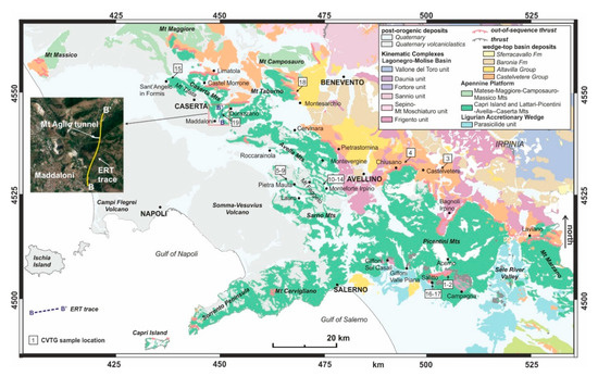 We thank the editor G. Wang and the guest editors D. Liotta, G. Molli and A. Cipriani for the opportunity to share our research in the Special Issue “The Apennines: Tectonics, Sedimentation, and Magmatism from the Palaeozoic to the Present”. We are grateful to the two reviewers L. Aldega and P. Pace, for the useful suggestions and corrections that improved the final version of the manuscript. We thank the Consorzio CANCELLO FRASSO TELESINO (CFT) for the permission to publish the ERT and well log data, access to the tunnel excavation and use photos of the front-excavation. Finally, we thank G. Vespasiano and F. Ferraro for the help in the field.