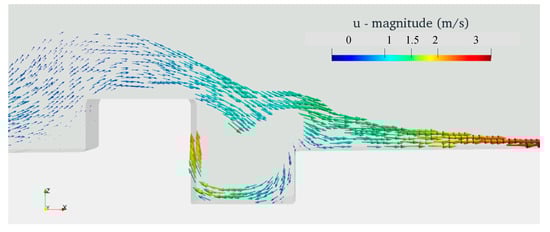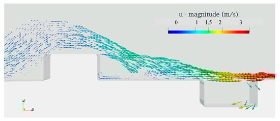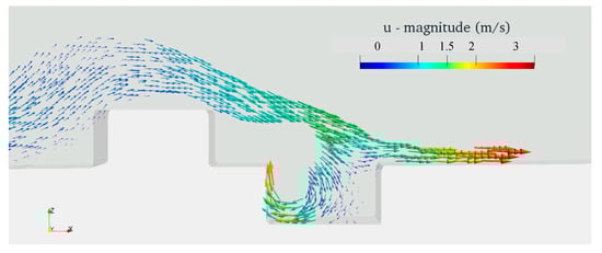 Current velocity vectors at t = 13.2 s for simulation Case 36 (Table 4).