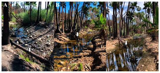 Across the world, wildfires are increasing in frequency and magnitude under a changing climate and increased human interaction, which in turn impacts natural resources, infrastructure, and millions of people [1]. Continuous and extreme landscape conversion due to the expansion of the human population and establishments in southern California (United States) has fragmented chaparral ecosystems and proliferated the Wildland–Urban Interface (WUI). This has increased the potential for ignition and damages to human communities and surrounding ecosystems [2,3]. The magnitude of fire effects on Mediterranean riverine systems is often related to fire frequency, severity, and timing, which are driven by climate conditions, vegetation type, fuel loads, and landscape conditions [4]. The variable hydrologic, geomorphic, and ecosystem responses induced by fire introduce a high degree of uncertainty in modeling and predictions for management.