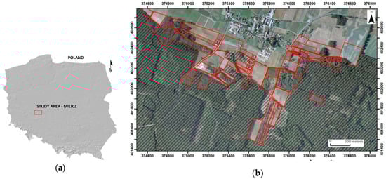 - Cadastral data: 2007, parcels and land use; source: Geoportal and WebEWID portal for the Milicz District (coordinate system: PL-1992). Cadastral data were used as the official information about LULC classes for the analyzed area.