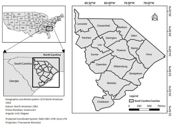 Location of the study area (30,408 km2), Coastal South Carolina.