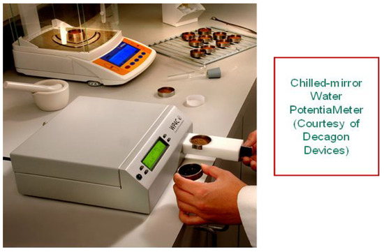 Measurements are also commonly made in the high suction range using a vapor equilibrium technique. Small soil specimens are prepared and allowed to dry for selected time periods. The water content and total suction are then measured on each specimen. It should be noted the total suctions are measured in the high suction range, whereas the matric suction is measured in the low suction range. In lieu of this seeming inconsistency, the data generally shows a smooth curve throughout the entire suction range. The total suctions can readily be measured using a chilled-mirror PotentiaMeter (Decagon Devices, Pullman, WA, USA) (Figure 9).