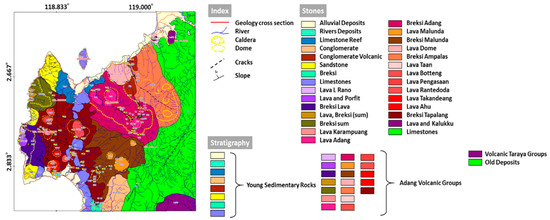- Hartono, U.S. Geology Sulawesi, 1st ed.; LIPI Press: Jakarta, Indonesia, 2013. [Google Scholar]