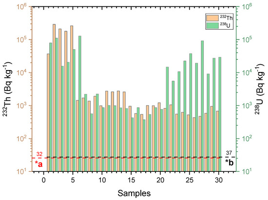 238U and 232Th concentration in Mamuju. *a is the worldwide average for 238U; *b is the worldwide average for 232Th.