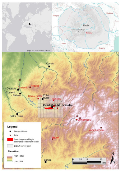 - Oltean, I.A.; Hanson, W.S. Conquest strategy and political discourse: New evidence for the conquest of Dacia from LiDAR analysis at Sarmizegetusa Regia. J. Rom. Archaeol. 2017, 30, 429–446. [Google Scholar] [CrossRef]