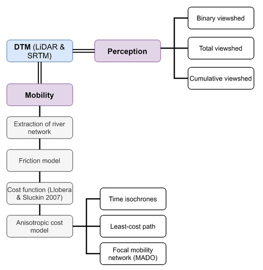 Beyond its contribution to integrating various datasets to reconstruct ancient landscapes and settlement patterns (e.g., [16,30,31,32,33,34,35]), GIS-based spatial analysis has already demonstrated its potential in understanding and modelling ancient movement and perception in upland areas, where physical evidence for ancient paths, tracks and roads is absent (e.g., [29,36,37]). Movement and perception are structural mechanisms of human interaction with the natural world, of ways of being-in-the-world, which makes them key issues in the analysis and interpretation of landscape-based archaeological contexts [13,36]. Our case study moves further and suggests that the control of these elements may even condition social order within certain territories.