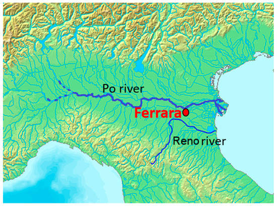 The city of Ferrara is situated in the alluvial plain of the Po River at the junction between the internal part the Po River delta plain and the alluvial plain of the Reno River [47].