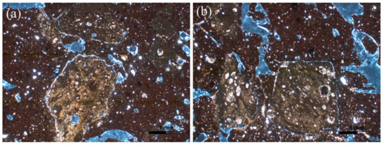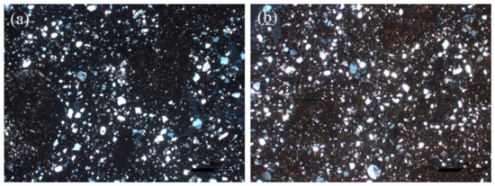 Photomicrographs of the fabric group 4: (a) sample K7 and (b) K127. All photomicrographs are taken under crossed Nicols (XP).
