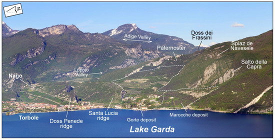 Several distinctive rock avalanche deposits are present at the junction between the paleovalley connecting the Loppio area with Lake Garda (Figure 4). According to [28], these include the following: