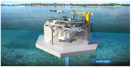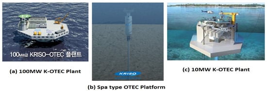 - Kim, H.J.; Lee, H.S.; Seo, J.B.; Lim, S.T.; Moon, J.H. Demonstration Test Result of K-OTEC 1000 (1 MW Barge Mounted OTEC Power Plant). In Proceedings of the 4th China-Korea Ocean Energy Workshop, Qingdao, China, 30 October 2020; Volume 1. [Google Scholar]