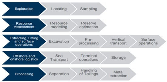 Typical deep-sea minerals mining value chain [30]. Reprinted with permission from SPC (Pacific Community).