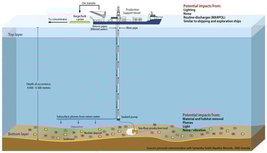 Potential range of mining activities for deep sea mining activities [30]. Reprinted with permission from SPC (Pacific Community).