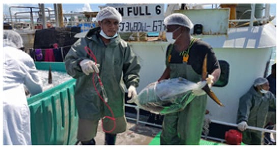 Kiribati Fish Ltd. [36] was established in 2010 and completed in 2012. It is located at Betio Port, South Tarawa Island. Fiji and China have invested US $8 million, contributing to the revitalization of the local economy and job creation. The core businesses of the Kiribati Fisheries Company are tuna fishing, local fisheries, fish processing, and export packaging and transport (Figure 19 and Figure 20). This industry has created jobs for 200 people.