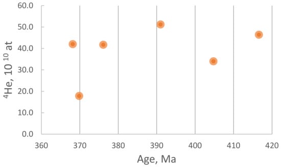 However, several theoretical and practical problems remain. The reason behind the scattering of U-Th-He ages is still unclear. Pyrite U-Th-He ages from both the Uzelga and Novogodnee-Monto deposits show relatively large scatter across a time interval of around 50 million years. This scatter could be related to both methodological or theoretical imperfections, such as an underestimation of trapped He or incomplete pyrite decomposition. However, this scattering could instead indicate a complex history of pyrite formation, accompanied by sulfide recrystallization. Therefore, this scattering could provide important information which may aid our understanding of the ore-forming processes in these deposits. These implications could also be applied to understand the “scattering” of Re-Os ages in sulfides.