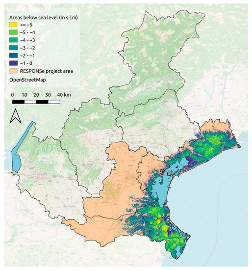 As a consequence of such premises, the Veneto Region is particularly subject to both climate change and geological hazards. In 2007 (26 September), the coastal area, already strongly characterized by erosion phenomena, was affected by high intensity precipitation events that saw the area between Chioggia and Mestre-Marghera (Metropolitan City of Venice), crucial from an economic point of view, affected by a quantity of rainfall equal to 35–40% of the total which affects the sector on average in a year, with consequent widespread flooding.