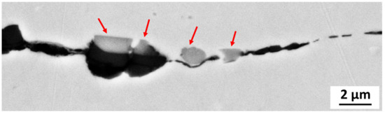 The Inconel 625 exposed in Chaunoy contained subsurface cracks parallel to the surface which crossed the inclusions as seen in Figure 12. Due to geometric discontinuity, the inclusions often act as weak points in materials [34] and can be prone to cracking and crack propagation.