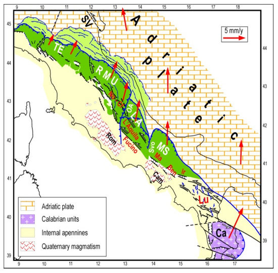 - The Adriatic crust and the Apennine belt were affected by strong shortening, with the development of major thrust faults (e.g., [41,150]).