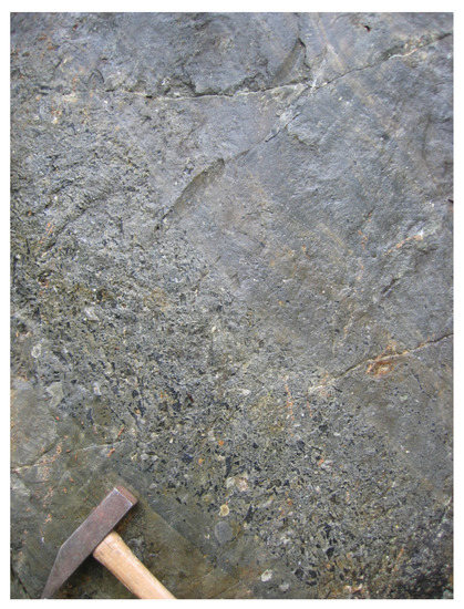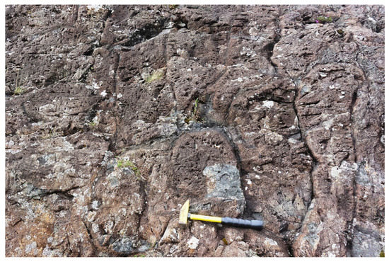 Breccia pipes are associated with a suite of Caledonian Appinites that was intruded immediately before the earliest Donegal granite plutons. They were formed through explosive pressure from upward-streaming gas-rich magma, causing fragmentation of the country rock. However, most Donegal sites, such as Kilkenny Breccia Pipe (Figure 15) [43], are largely inaccessible (remote, rough ground and/or private farmland) and most likely only of student and specialist interest.