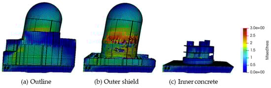 - Nakamura, N.; Akita, S.; Suzuki, T.; Koba, M.; Nakamura, S.; Nakano, T. Study of Ultimate Seismic Response and Fragility Evaluation of Nuclear Power Building Using Nonlinear Three-dimensional Finite Element Model. Nucl. Eng. Des. 2010, 240, 166–180. [Google Scholar] [CrossRef]