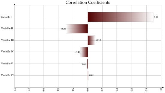 It is important that the models constituting both the risk analysis and the risk evaluation are considered for the sensitivity analysis since all models contain uncertainties that can have a large impact on the overall result. In Figure 9, a principal illustration of a performed sensitivity analysis using Spearman rank correlation coefficients on six input parameters for the calculation of the NPV is shown. Variable I-VI constitutes input variables used in the risk evaluation (costs, Ci, and benefits, Bi). The variables used for determining the probability, fi, and the consequences, Ci, of damage are also included, because the benefits in the risk evaluation are calculated from the difference in risk level of the measure alternatives compared to the reference alternative obtained from the risk analysis. A positive value of ρ close to 1 indicates a strong positive dependence, while a value of ρ close to −1 indicates a strong inverse dependence. As indicated by the figure, the output result is strongly dependent on variable I suggesting that this parameter should be considered for further investigation in order to reduce the overall model uncertainty. Because groundwater drawdown induced by leakage can affect large areas surrounding the underground facility, the sensitivity analysis for some of the models constituting the risk analysis may be necessary to perform spatially, i.e., in more than one dimension (see for example sensitivity analysis performed on a model for groundwater-induced subsidence in Sundell et al. [63]).