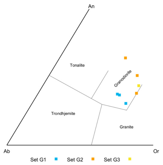 28. Frost, B.R.; Barnes, C.G.; Collins, W.J.; Arculus, R.J.; Ellis, D.J.; Frost, C.D. A Geochemical Classification for Granitic Rocks. J. Petrol. 2001, 42, 2033–2048. [Google Scholar] [CrossRef]