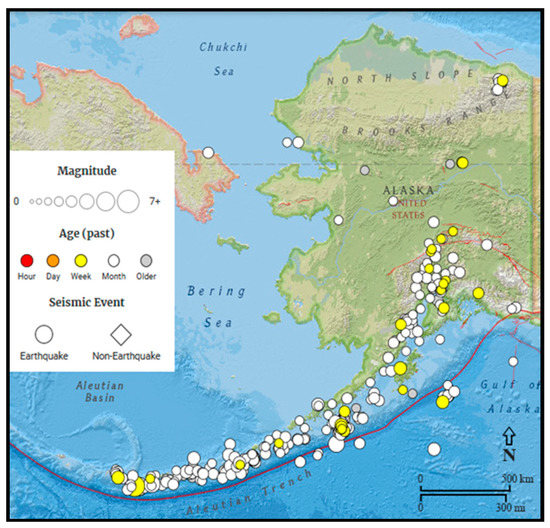 - USGS. USGS Real-Time Seismic Avtivity Database. 2021. Available online: https://earthquake.usgs.gov/earthquakes/map/?extent=65.97892,-150.9549&extent=66.68017,-147.99957&range=search&showUSFaults=true&baseLayer=terrain&timeZone=utc&search=%7B%22name%22:%22SearchResults%22,%22params%22:%7B%22starttime%22:%222020-12-0400:00:0 (accessed on 1 February 2021).