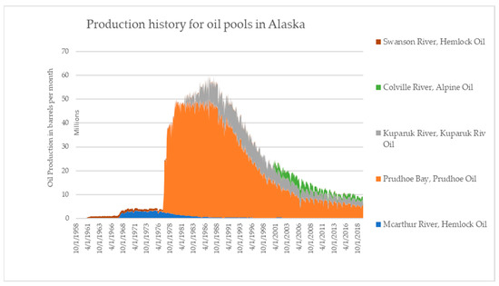 - Thomas, C.P.; North, W.B.; Doughty, T.C.; Hite, D.M. Alaska North Slope Oil and Gas A Promising Future or an Area in Decline? Technical Report; Dep. Energy Natl. Energy Technol. Lab: Pittsburgh, PA, USA, 2009; Available online: https://www.researchgate.net/publication/315682980_Alaska_North_Slope_Oil_and_Gas_A_Promising_Future_or_an_Area_in_Decline (accessed on 19 February 2021).