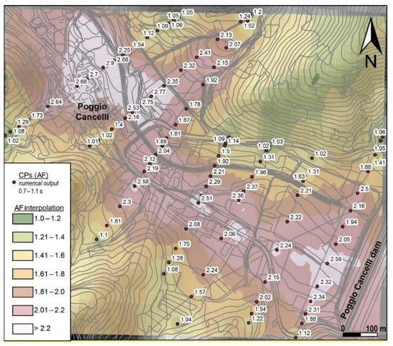 In recent decades, a large body of literature (e.g., [,,,]) and national guidelines for seismic microzonation studies (e.g., [,,]) evidenced the reliability of evaluating the expected seismic response of a site in the case of seismic shaking using engineering-geological modeling, near-surface geophysical investigations, and numerical modeling.