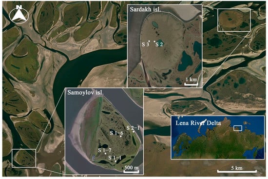 - Zubrzycki, S.; Kutzbach, L.; Grosse, G.; Desyatkin, A.; Pfeiffer, E.M. Organic carbon and total nitrogen stocks in soils of the Lena River Delta. Biogeosciences 2013, 10, 3507–3524. [Google Scholar] [CrossRef]