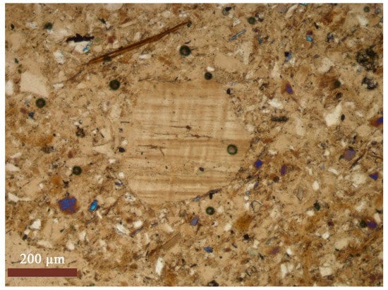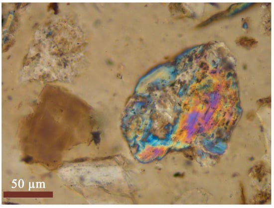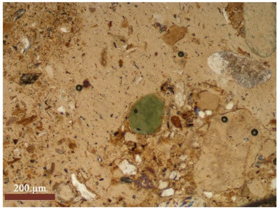This island has pre-Quaternary parent rocks, with the upper part of the island being composed of ancient sands over 50,700 ages BP. Thin section of study soils from Sardakh Island are presented in Figure 10, Figure 11 and Figure 12.
